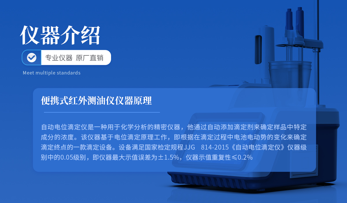 | 自动电位滴定仪是一种用于化学分析的精密仪器,他通过自动添加滴定剂来确定样品中特定成分的浓度。该仪器基于电位滴定原理工作,即根据在滴定过程中电池电动势的变化来确定滴定终点的一款滴定设备。设备满足国家检定规程JJG 814-2015《自动电位滴定仪》仪器级别中的0.05级别,即仪器**示值误差为±1.5%,仪器示值重复性≤0.2% |