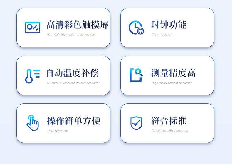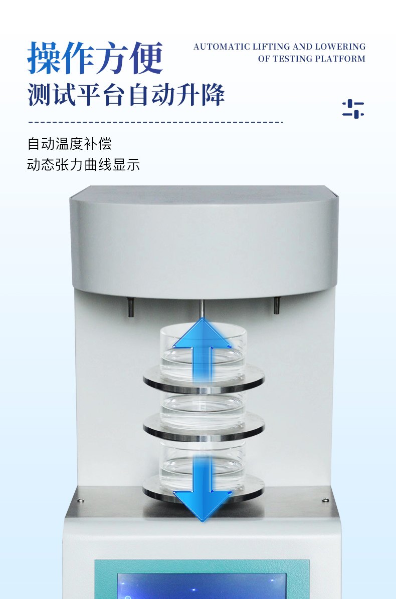 | 仪器采用等一点标定,简单方便,保证测量精度; | 自动温度补偿;动态张力曲线显示; | 时钟功能,掉电存储功能; | 高清晰彩色触摸屏,操作更加方便; |