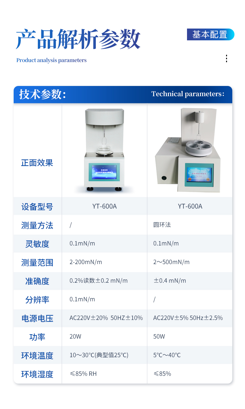 | 测量范围:2-200mN/m | 准 确 度:0.2%读数±0.2 mN/m | 分 辨 率:0.1mN/m | 灵 敏 度:0.1mN/m | 电源电压:AC220V±20% 50HZ±10% | **功耗:20W | 适用环境温度:10~30℃(典型值25℃) | 适用环境湿度:≤85% RH |