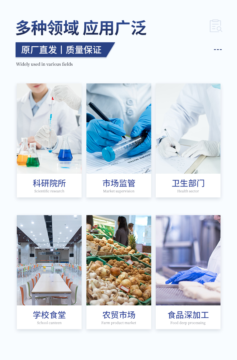 该多功能肉类检测仪为集成化肉品安全快速检测分析设备,广泛应用于养殖场、屠宰场、食品肉产品深加工企业、检验检疫部门、食药监局、卫生部门、高教院校、科研院所、农业部门等单位使用。
