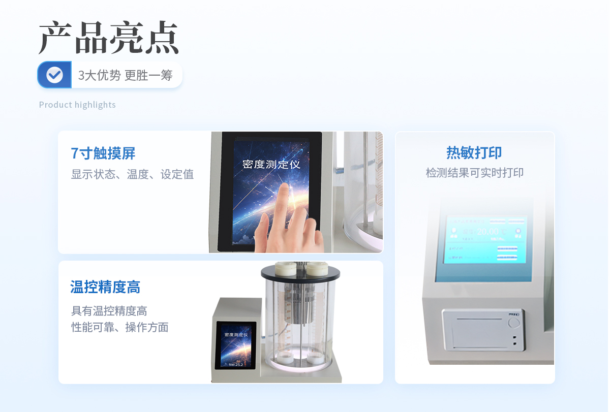 | 该仪器按照GB/T 1884-2000方法要求,由CPU控制加热器、制冷器对水浴进行控温,蓝色LCD显示器显示状态、温度、设定值,当水浴温度达到设定值时,将试样倒入温度大致相同的密度计量筒中,将合适的密度计放入已调好温度的试样中,让它静止。当温度达到平衡后,读取密度计刻度读数和试样温度,用石油计量表把观察到的密度计读数换算成标准密度。 |