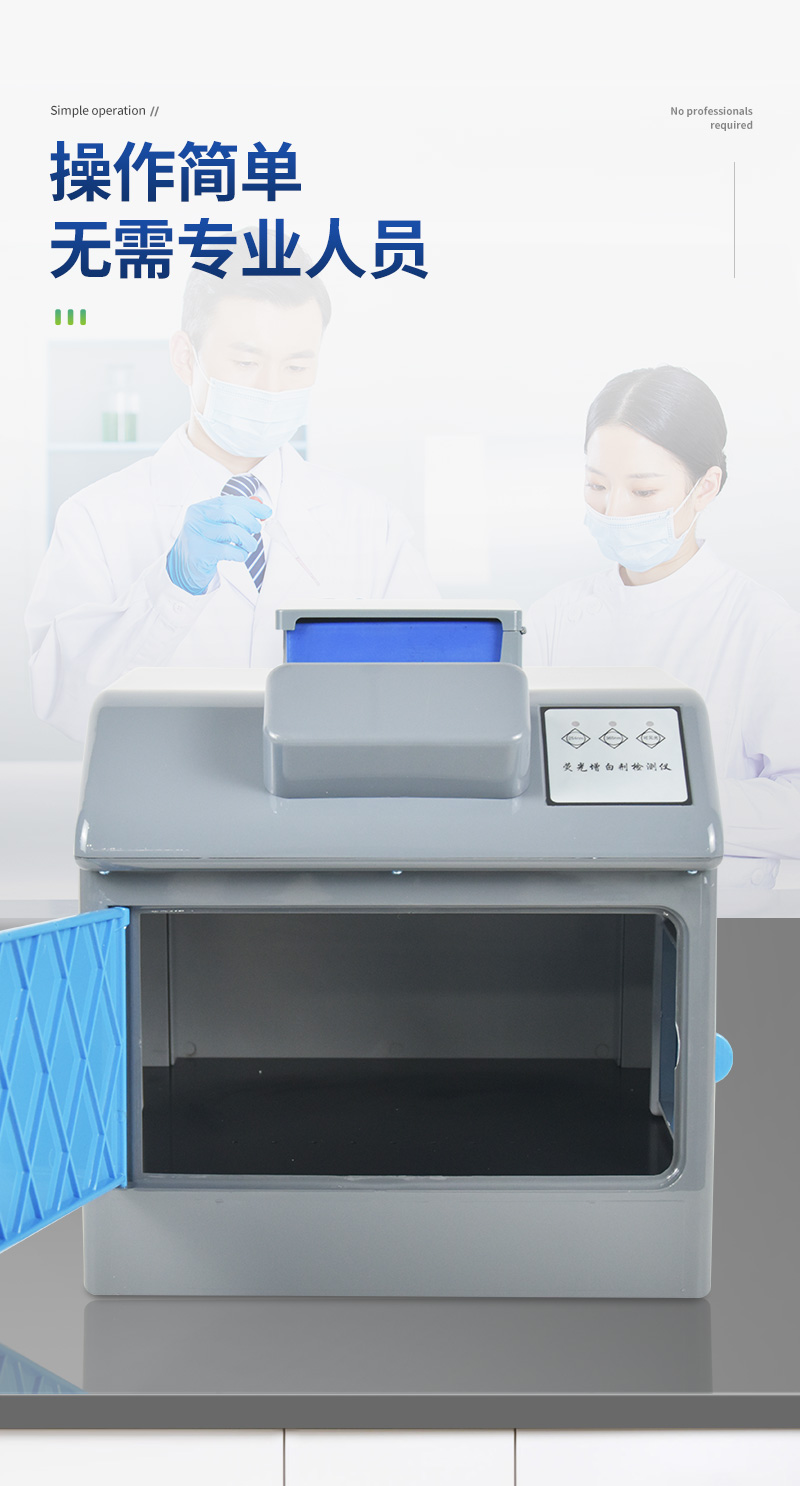 | ★1、采用微电脑进行控制,准确率高 | ★2、操作简单,无需专业人员 | ★3、检测速度快,1分钟出检测结果 | ★4、体积小、重量轻、便于携带 |